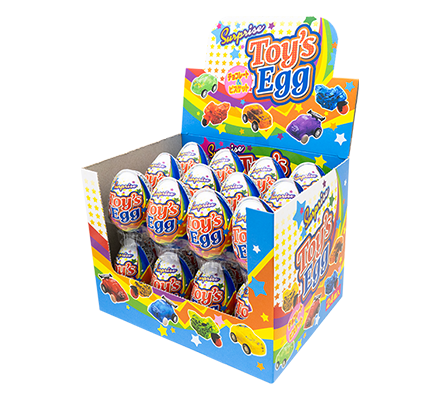 たまごを開けると中から乗り物のおもちゃが出てくる楽しいエッグチョコです。