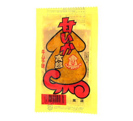 原材料:魚肉すり身(魚肉、砂糖)(国内製造)、小麦粉、イカ粉、キムチの素、砂糖、醤油、香辛料/調味料(アミノ酸等)、ソルビット、酸味料、カラメル色素、甘味料(ステビア、甘草)、(一部に小麦・いか・えび・大豆を含む)