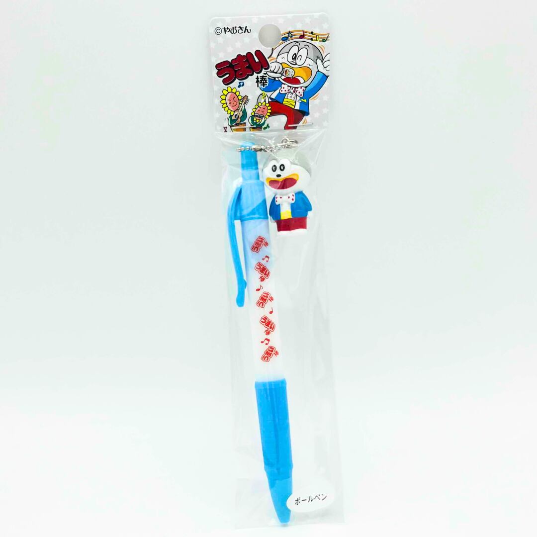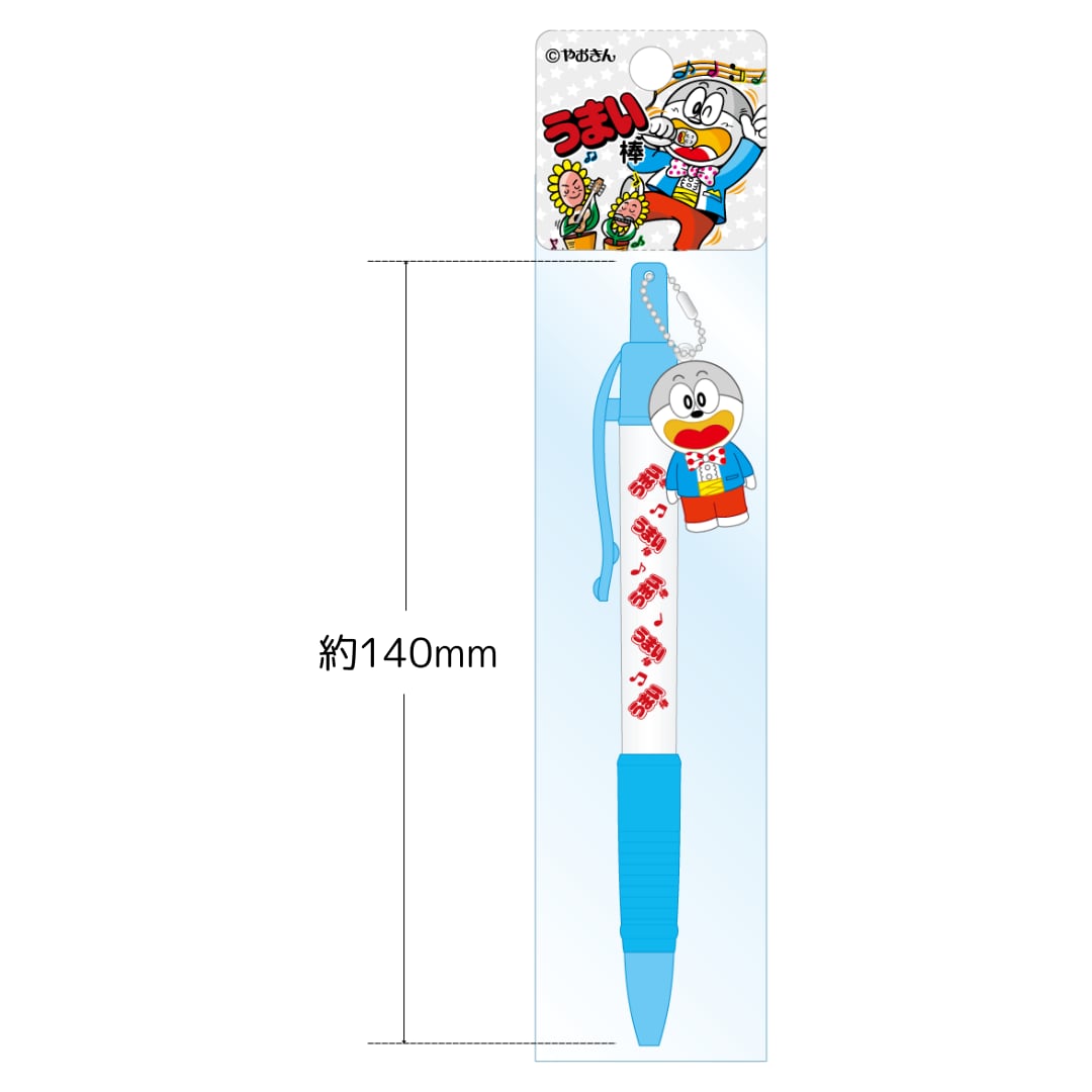 うまえもんのチャームが付いた、うまい棒ロゴのデザインが特徴です。